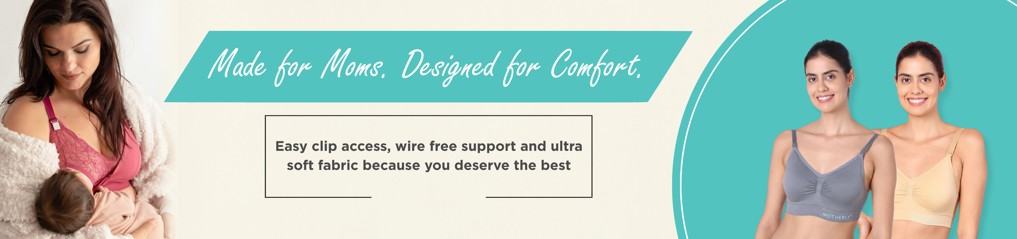 Motherly Padded Maternity Nursing Bra – Breastfeeding Bra with Removable Pads (Medium, Grey + Skin, Pack of 2) -